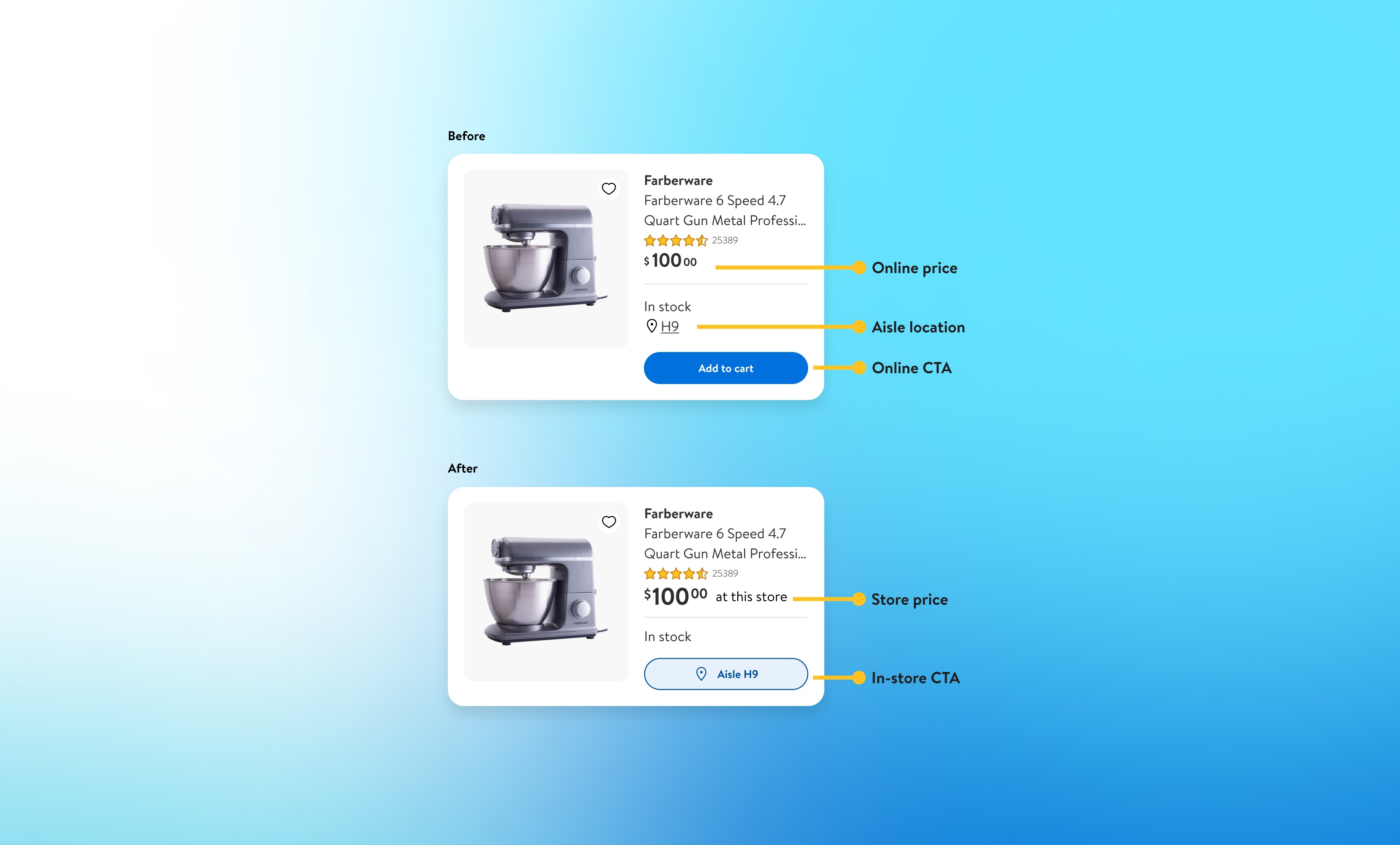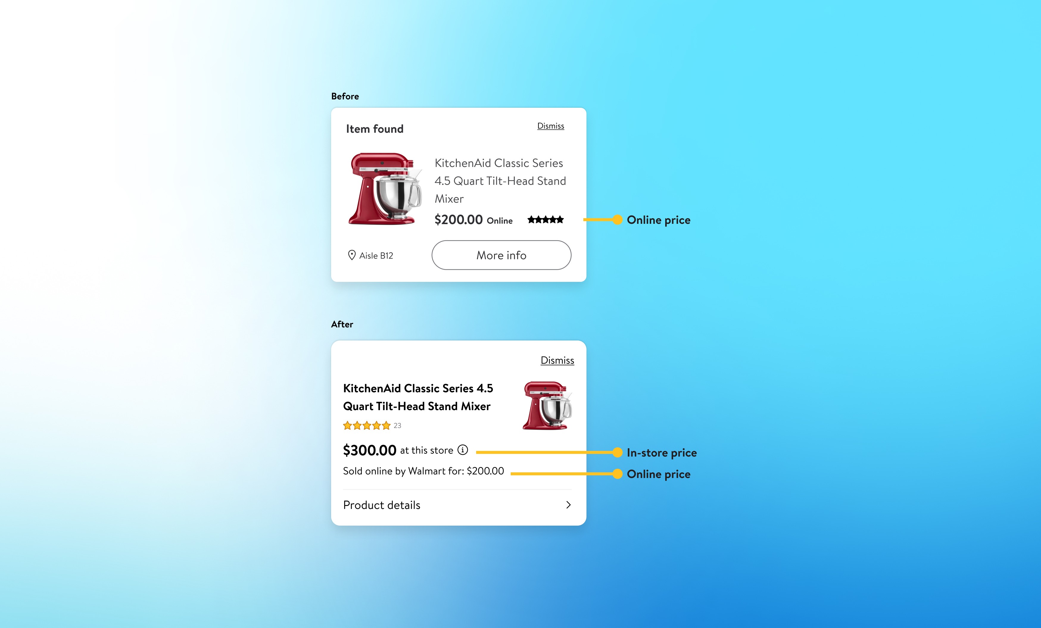 Each area of the experience we touched was owned by a different team. Collaboration with each team was essential in updating the price to reflect the in-store price.