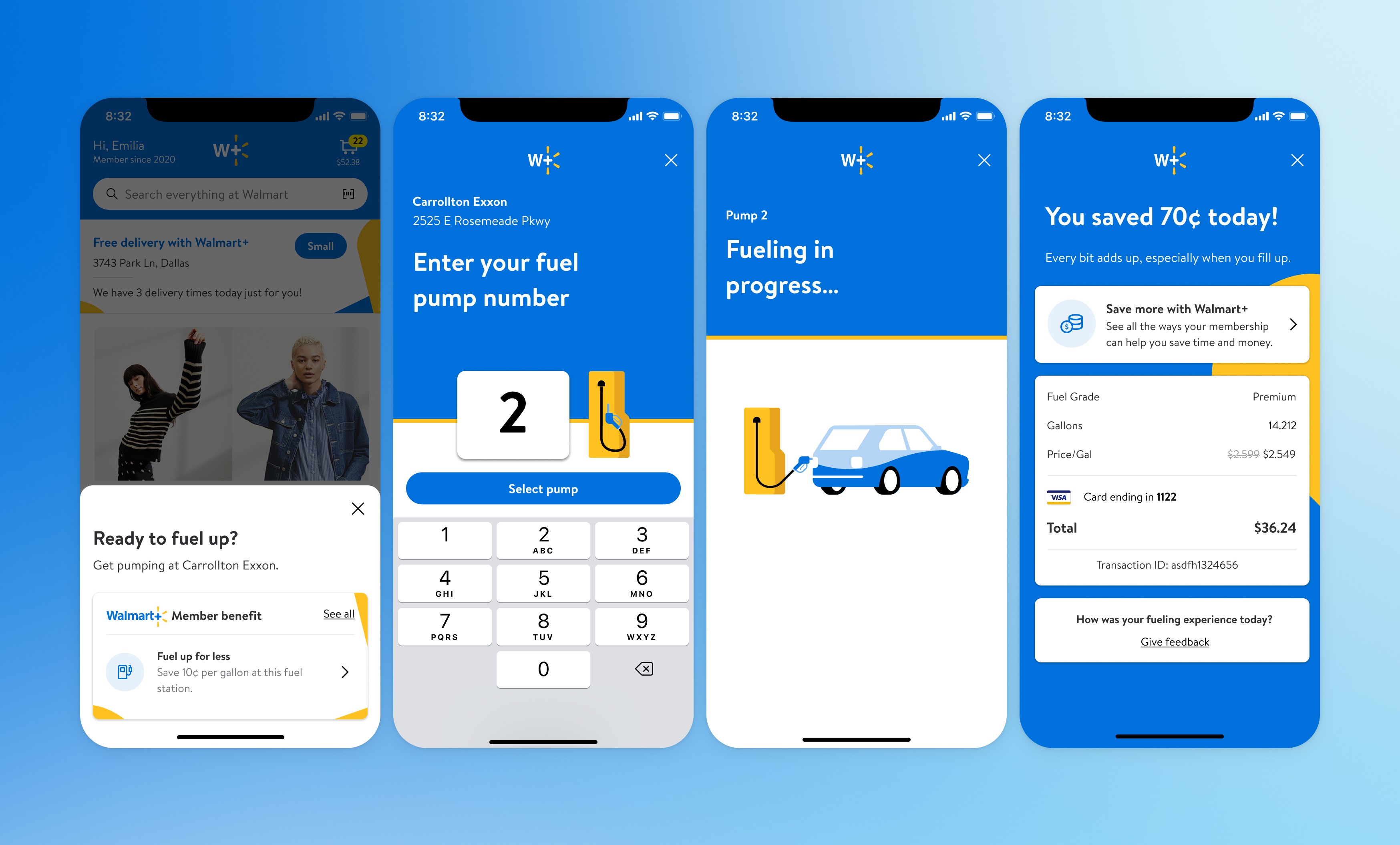 Add ExxonMobil as a new partner and keep the experience simple and easy. We initially proposed having a unique W+ QRcode on each fuel pump, to match the current Walmart+ fueling experience. This wasn’t feasible as it would give special priority to our discount on every pump. We compromised on using the existing QRcodes for Exxon Mobil Rewards program.